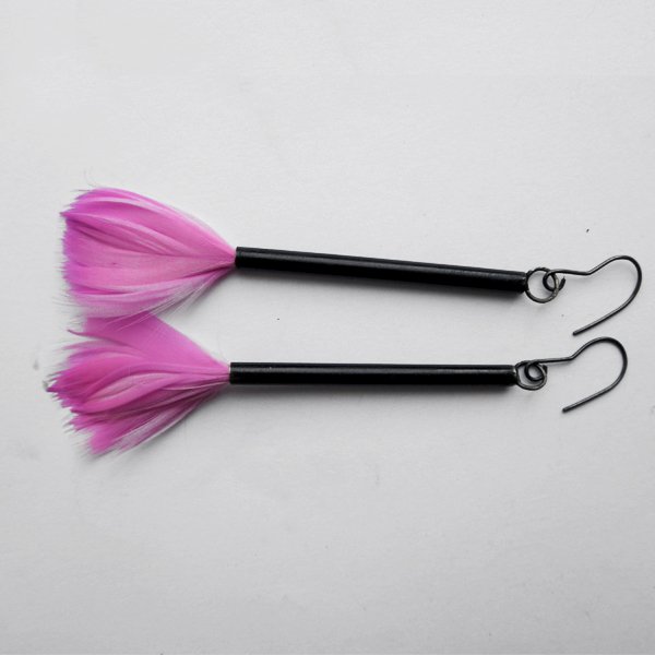 PIÓRKO - stylowy dodatek. Połączenie lekkości piórka i trwałości metalu. Metal niezwykle kontrastuje z naturalnym barwionym puchem. Kolczyki wykonane są z mosiądzu, naturalnie barwione pióra. Mosiądz - zmatowiony, oksydowany. Bigle otwarte - srebro pr.925 oksydowane. Długość z biglami - ok. 9 cm. Szerokość - 2 cm. Waga - ok. 2,8 g.. Termin realizacji zamówienia to 1-2 dni.