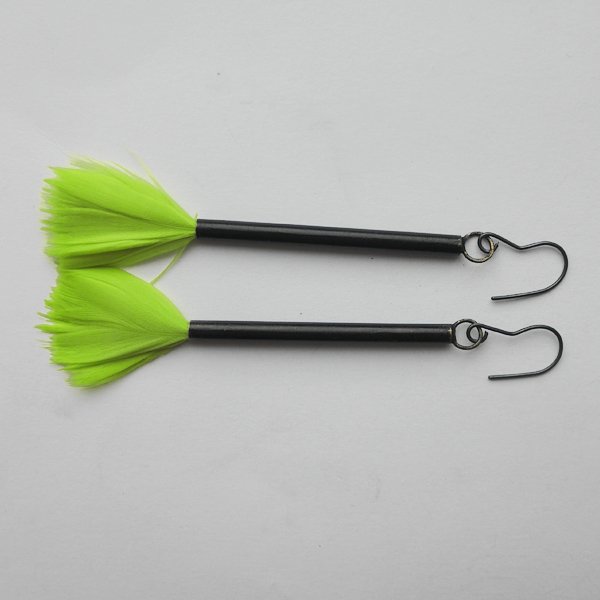 PIÓRKO - stylowy dodatek. Połączenie lekkości piórka i trwałości metalu. Metal niezwykle kontrastuje z naturalnym barwionym puchem. Kolczyki wykonane są z mosiądzu, naturalnie barwione pióra. Mosiądz - zmatowiony, oksydowany. Bigle otwarte - srebro pr.925 oksydowane. Długość z biglami - ok. 9 cm. Szerokość - 2 cm. Waga - ok. 2,8 g.. Termin realizacji zamówienia to 1-2 dni.