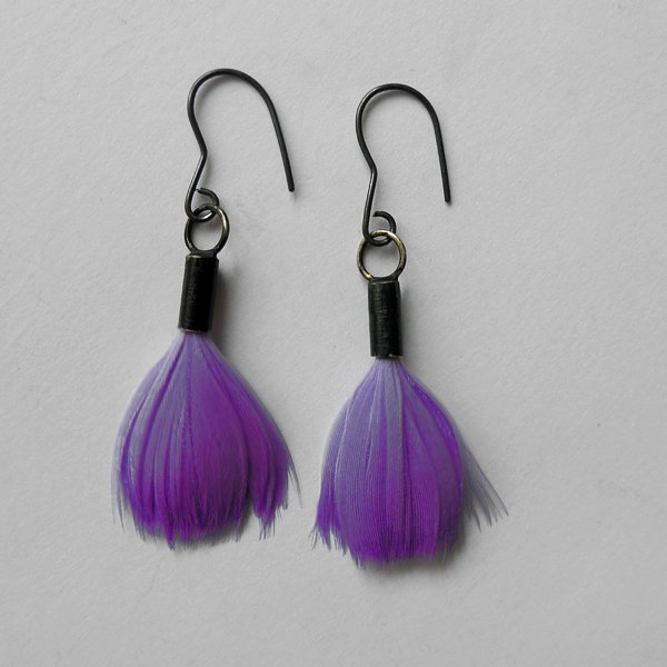 PIÓRKO - stylowy dodatek. Połączenie lekkości piórka i trwałości metalu. Metal niezwykle kontrastuje z naturalnym barwionym puchem. Kolczyki wykonane są z mosiądzu, naturalnie barwione pióra. Mosiądz - oksydowany. Bigle otwarte - srebro pr.925,oksydowane. Długość z biglami - ok. 5,5cm. Szerokość - 2 cm. Waga - ok. 2,3 g.