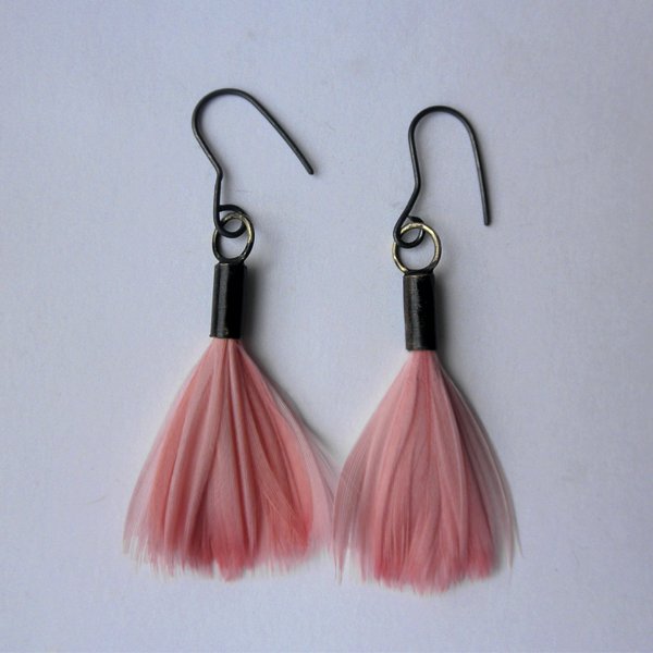PIÓRKO - stylowy dodatek. Połączenie lekkości piórka i trwałości metalu. Metal niezwykle kontrastuje z naturalnym barwionym puchem. Kolczyki wykonane są z mosiądzu, naturalnie barwione pióra. Mosiądz - oksydowany. Bigle otwarte - srebro pr.925,oksydowane. Długość z biglami - ok. 5,5cm. Szerokość - 2 cm. Waga - ok. 2,3 g.