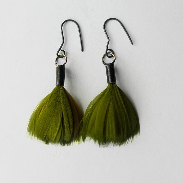 PIÓRKO - stylowy dodatek. Połączenie lekkości piórka i trwałości metalu. Metal niezwykle kontrastuje z naturalnym barwionym puchem. Kolczyki wykonane są z mosiądzu, naturalnie barwione pióra. Mosiądz - oksydowany. Bigle otwarte - srebro pr.925,oksydowane. Długość z biglami - ok. 5,5cm. Szerokość - 2 cm. Waga - ok. 2,3 g.