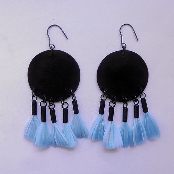 PIÓRKO - stylowy dodatek. Połączenie lekkości piórka i trwałości metalu. Metal niezwykle kontrastuje z naturalnym barwionym puchem. Kolczyki wykonane są z mosiądzu, naturalnie barwione pióra. Mosiądz - zmatowiony, poksydowany. Bigle otwarte - srebro pr.925,oksydowane. Długość z biglami - ok. 10 cm. Szerokość - 4,7 cm.