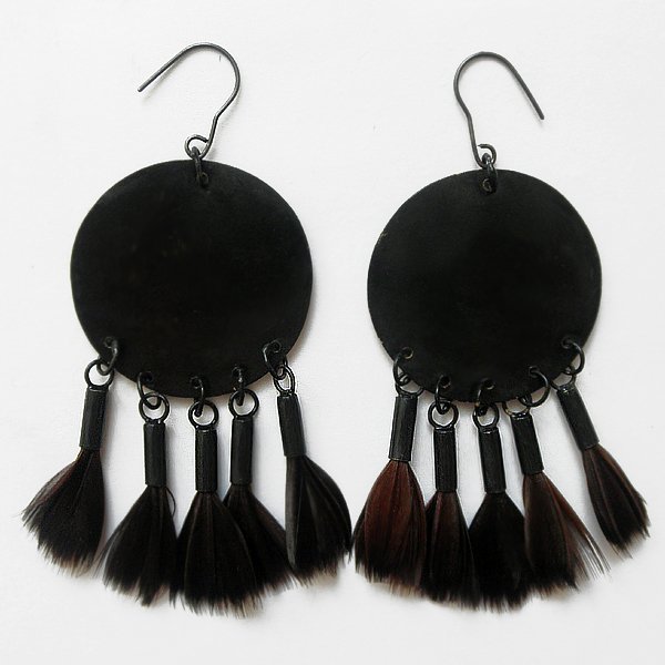 PIÓRKO - stylowy dodatek. Połączenie lekkości piórka i trwałości metalu. Metal niezwykle kontrastuje z naturalnym barwionym puchem. Kolczyki wykonane są z mosiądzu, naturalnie barwione pióra. Mosiądz - zmatowiony, poksydowany. Bigle otwarte - srebro pr.925,oksydowane. Długość z biglami - ok. 10 cm. Szerokość - 4,7 cm.