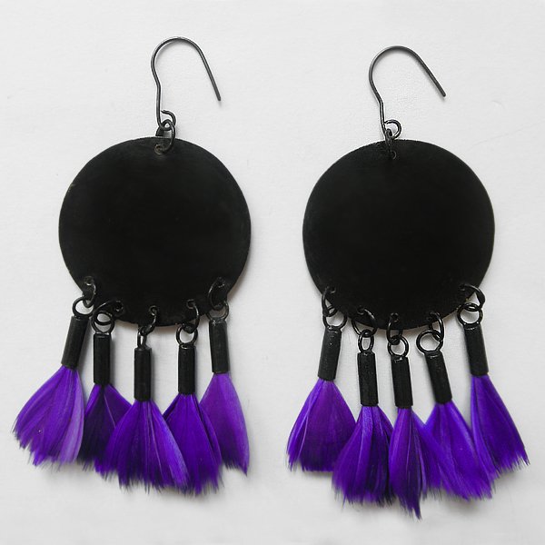 PIÓRKO - stylowy dodatek. Połączenie lekkości piórka i trwałości metalu. Metal niezwykle kontrastuje z naturalnym barwionym puchem. Kolczyki wykonane są z mosiądzu, naturalnie barwione pióra. Mosiądz - zmatowiony, poksydowany. Bigle otwarte - srebro pr.925,oksydowane. Długość z biglami - ok. 10 cm. Szerokość - 4,7 cm.
