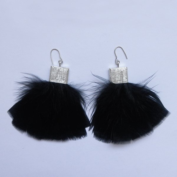 PIÓRKO - stylowy dodatek. Połączenie lekkości piórka i trwałości metalu. Metal niezwykle kontrastuje z naturalnym barwionym puchem. Kolczyki wykonane są z : srebro, naturalnie barwione pióra. Srebro pr.925- zmatowiony. Bigle otwarte - srebro pr.925.Długość z biglami - 9,5 cm. Szerokość - 8 cm.
