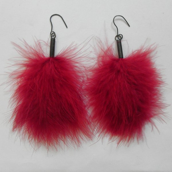 PIÓRKO - stylowy dodatek. Połączenie lekkości piórka i trwałości metalu. Metal niezwykle kontrastuje z naturalnym barwionym puchem. Kolczyki wykonane są z : mosiądz, naturalne barwione pióra. Mosiądz : oksydowany. Bigle otwarte - srebro pr.925,oksydowane. Długość z biglami - 8 cm. Waga: ok. 3 g.