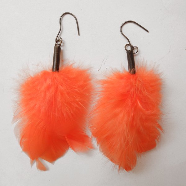 PIÓRKO - stylowy dodatek. Połączenie lekkości piórka i trwałości metalu. Metal niezwykle kontrastuje z naturalnym barwionym puchem. Kolczyki wykonane są z mosiądzu, naturalnie barwione pióra. Mosiądz - oksydowany. Bigle otwarte - srebro pr.925,oksydowane. Długość z biglami - 8,5 cm. Szerokość - ok. 4,5 cm.