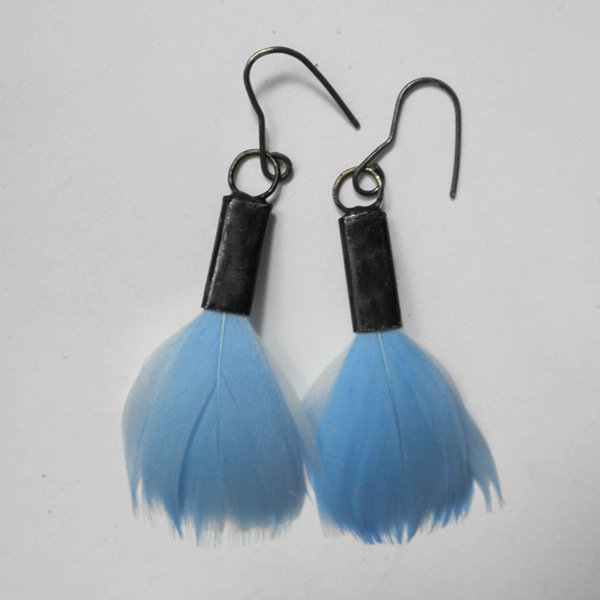 PIÓRKO - stylowy dodatek. Połączenie lekkości piórka i trwałości metalu. Metal niezwykle kontrastuje z naturalnym barwionym puchem. Kolczyki wykonane są z mosiądzu, naturalnie barwione pióra. Mosiądz - oksydowany. Bigle otwarte - srebro pr.925,oksydowane. Długość z biglami - 7,5 cm. Szerokość - ok. 3 cm.