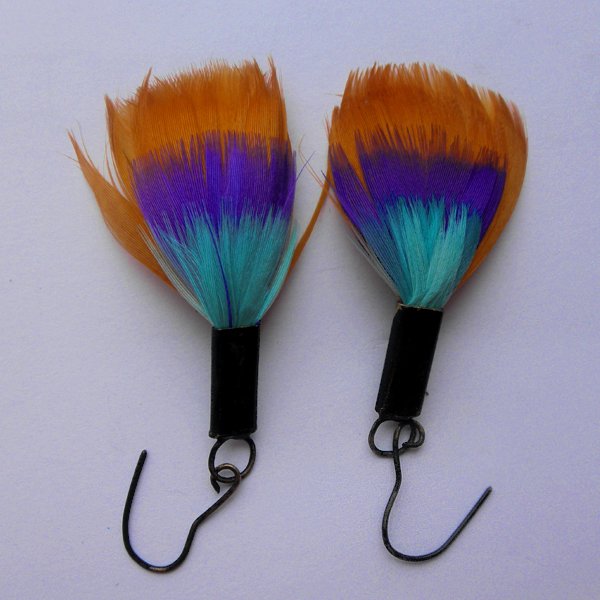 PIÓRKO - stylowy dodatek. Połączenie lekkości piórka i trwałości metalu. Metal niezwykle kontrastuje z naturalnym barwionym puchem. Kolczyki wykonane są z mosiądzu, naturalnie barwione pióra. Mosiądz - oksydowany. Bigle otwarte - srebro pr.925,oksydowane. Długość z biglami - 7,5 cm. Szerokość - ok. 3 cm.