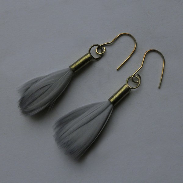 PIÓRKO - stylowy dodatek. Połączenie lekkości piórka i trwałości metalu. Metal niezwykle kontrastuje z naturalnym barwionym puchem. Kolczyki wykonane są z mosiądzu, naturalnie barwione pióra. Mosiądz - zmatowiony. Bigle otwarte - srebro pr.925,pozłacane. Długość z biglami - ok. 5,5cm. Szerokość - 2 cm. Waga - ok. 2,3 g.