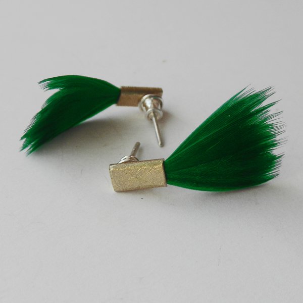 PIÓRKO - stylowy dodatek. Połączenie lekkości piórka i trwałości metalu. Metal niezwykle kontrastuje z naturalnym barwionym puchem.Kolczyki na sztyftach. Kolczyki wykonane są z :mosiądz,srebro- próby 0,925, naturalnie barwione pióra. Mosiądz - zmatowiony. Długość - ok. 3,5cm. Szerokość - 2 cm. Waga - ok. 2 g.