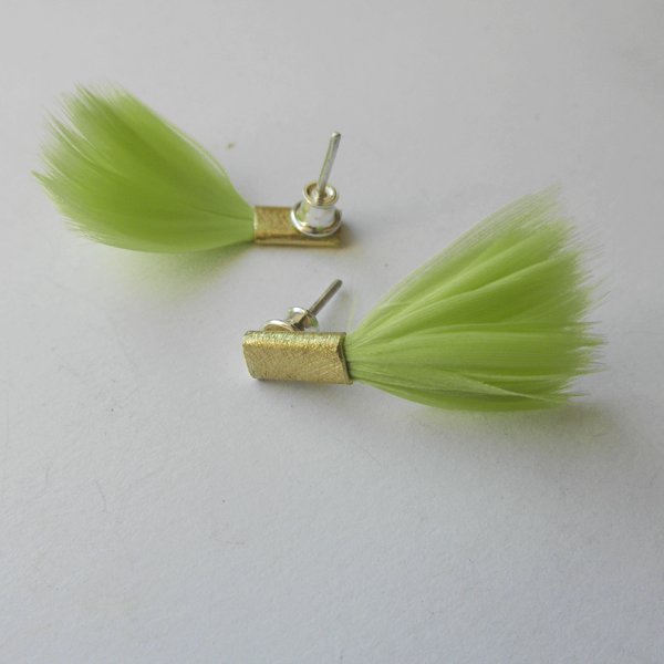 PIÓRKO - stylowy dodatek. Połączenie lekkości piórka i trwałości metalu. Metal niezwykle kontrastuje z naturalnym barwionym puchem.Kolczyki na sztyftach. Kolczyki wykonane są z :mosiądz,srebro- próby 0,925, naturalnie barwione pióra. Mosiądz - zmatowiony. Długość - ok. 3,5cm. Szerokość - 2 cm. Waga - ok. 2 g.
