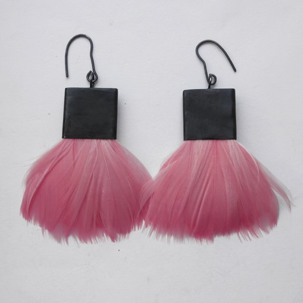PIÓRKO - stylowy dodatek. Połączenie lekkości piórka i trwałości metalu. Metal niezwykle kontrastuje z naturalnym barwionym puchem. Kolczyki wykonane są z mosiądzu, naturalnie barwione pióra. Mosiądz - zmatowiony, oksydowany. Bigle otwarte - srebro pr.925,oksydowane. Długość z biglami - ok. 10,5 cm. Szerokość - 5,5 cm.
