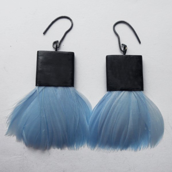 PIÓRKO - stylowy dodatek. Połączenie lekkości piórka i trwałości metalu. Metal niezwykle kontrastuje z naturalnym barwionym puchem. Kolczyki wykonane są z mosiądzu, naturalnie barwione pióra. Mosiądz - zmatowiony, oksydowany. Bigle otwarte - srebro pr.925,oksydowane. Długość z biglami - ok. 10,5 cm. Szerokość - 5,5 cm.
