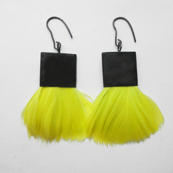PIÓRKO - stylowy dodatek. Połączenie lekkości piórka i trwałości metalu. Metal niezwykle kontrastuje z naturalnym barwionym puchem. Kolczyki wykonane są z mosiądzu, naturalnie barwione pióra. Mosiądz - zmatowiony, oksydowany. Bigle otwarte - srebro pr.925,oksydowane. Długość z biglami - ok. 10,5 cm. Szerokość - 5,5 cm.