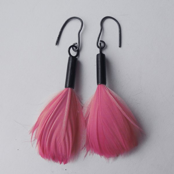 Kolczyki wykonane są z : mosiądz, naturalne barwione pióra.
