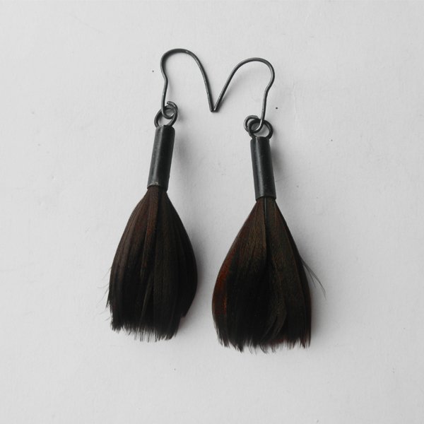 Kolczyki wykonane są z : mosiądz, naturalne barwione pióra.