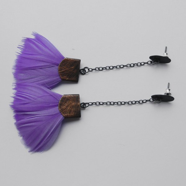 PIÓRKO - stylowy dodatek. Połączenie lekkości piórka i trwałości metalu. Metal niezwykle kontrastuje z naturalnym barwionym puchem. Kolczyki na sztyftach. Kolczyki wykonane są z : srebro, brąz, naturalnie barwione pióra. Brąz -zmatowiony, oksydowany. Srebro - oksydowane . Długość - 10,5 cm. Szerokość - 4 cm.