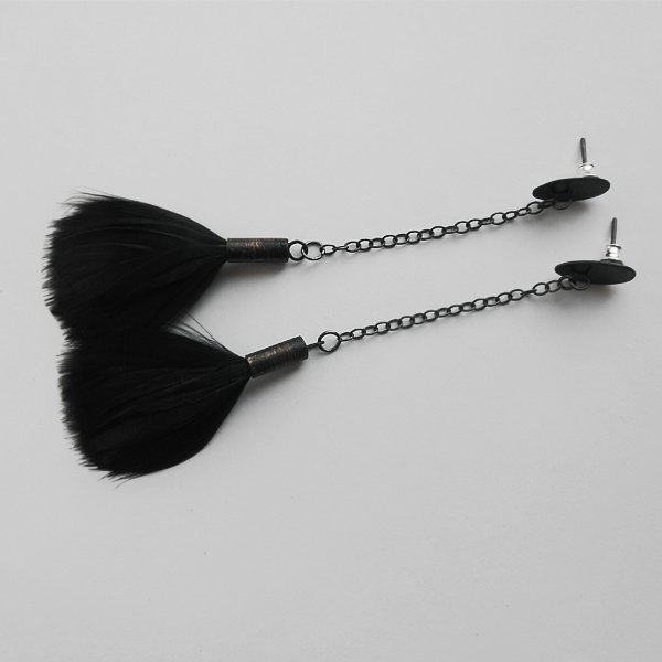PIÓRKO - stylowy dodatek. Połączenie lekkości piórka i trwałości metalu. Metal niezwykle kontrastuje z naturalnym barwionym puchem. Kolczyki na sztyftach. Kolczyki wykonane są z : srebro,miedź, naturalnie barwione pióra. miedź -zmatowiona, oksydowana.Srebro - oksydowane. Długość - 10,5 cm. Szerokość - 3 cm.