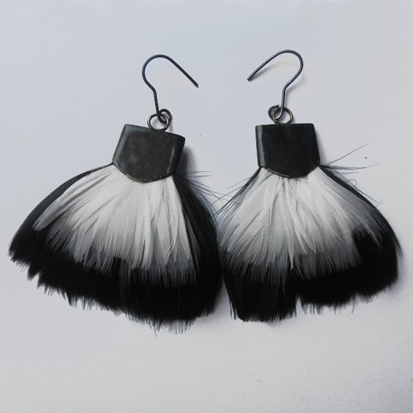 PIÓRKO - stylowy dodatek. Połączenie lekkości piórka i trwałości metalu. Metal niezwykle kontrastuje z naturalnym barwionym puchem. Kolczyki wykonane są z mosiądzu, naturalnie barwione pióra. Mosiądz - oksydowany. Bigle otwarte - srebro pr.925,oksydowane. Długość z biglami - 6,5 cm. Szerokość - 4 cm. Istnieje możliwość wykonania kolczyków w innej kolorystyce.