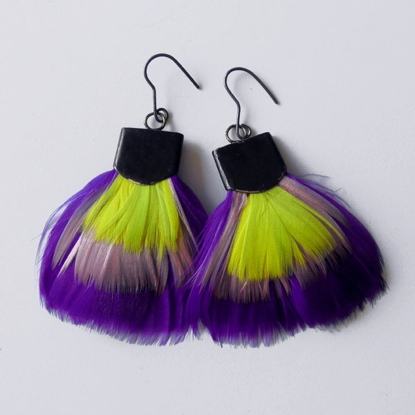 PIÓRKO - stylowy dodatek. Połączenie lekkości piórka i trwałości metalu. Metal niezwykle kontrastuje z naturalnym barwionym puchem. Kolczyki wykonane są z mosiądzu, naturalnie barwione pióra. Mosiądz - oksydowany. Bigle otwarte - srebro pr.925,oksydowane. Długość z biglami - 6,5 cm. Szerokość - 4 cm. Istnieje możliwość wykonania kolczyków w innej kolorystyce.