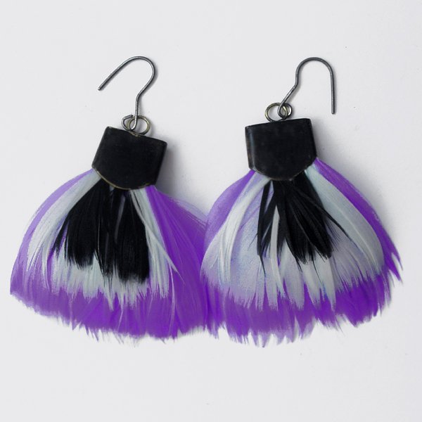 PIÓRKO - stylowy dodatek. Połączenie lekkości piórka i trwałości metalu. Metal niezwykle kontrastuje z naturalnym barwionym puchem. Kolczyki wykonane są z mosiądzu, naturalnie barwione pióra. Mosiądz - oksydowany. Bigle otwarte - srebro pr.925,oksydowane. Długość z biglami - 6,5 cm. Szerokość - 4 cm. Istnieje możliwość wykonania kolczyków w innej kolorystyce.
