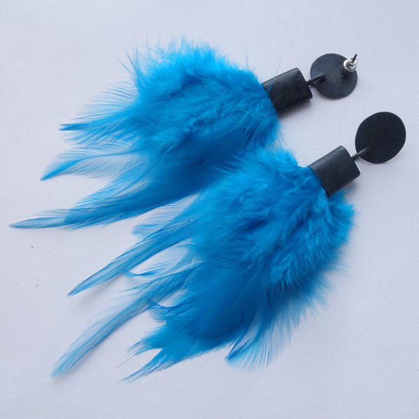 PIÓRKO - stylowy dodatek. Połączenie lekkości piórka i trwałości metalu. Metal niezwykle kontrastuje z naturalnym barwionym puchem. Kolczyki na sztyftach. Kolczyki wykonane są z : srebro, naturalnie barwione pióra. srebro -zmatowione, oksydowane. Długość ok. 15 cm. Szerokość - 6 cm.