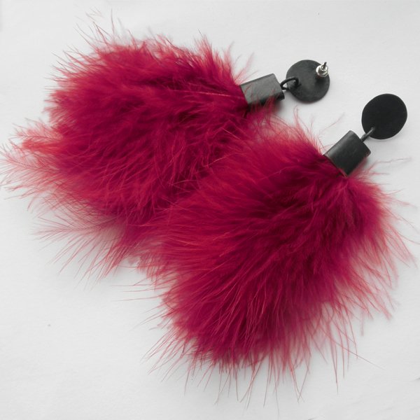 PIÓRKO - stylowy dodatek. Połączenie lekkości piórka i trwałości metalu. Metal niezwykle kontrastuje z naturalnym barwionym puchem. Kolczyki na sztyftach. Kolczyki wykonane są z : srebro, naturalnie barwione pióra. srebro -zmatowione, oksydowane. Długość ok. 11 cm. Szerokość - 6 cm.