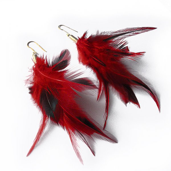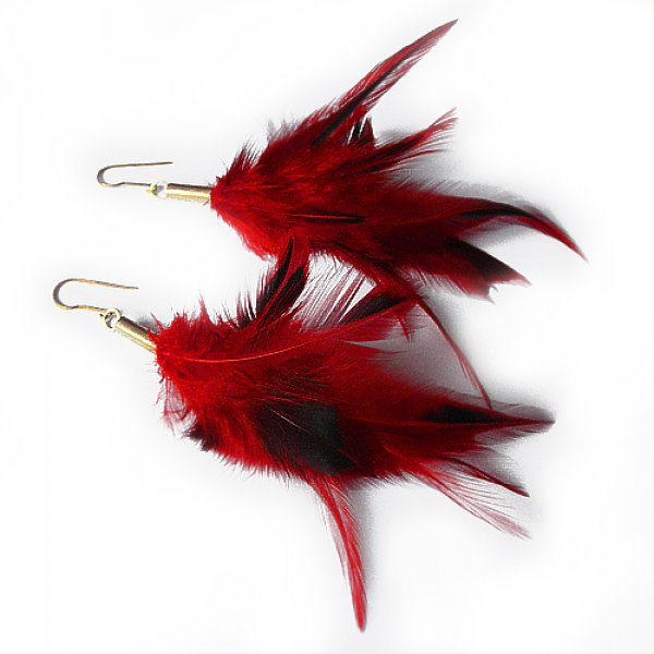 Kolczyki wykonane są z : mosiądz, naturalne barwione pióra.