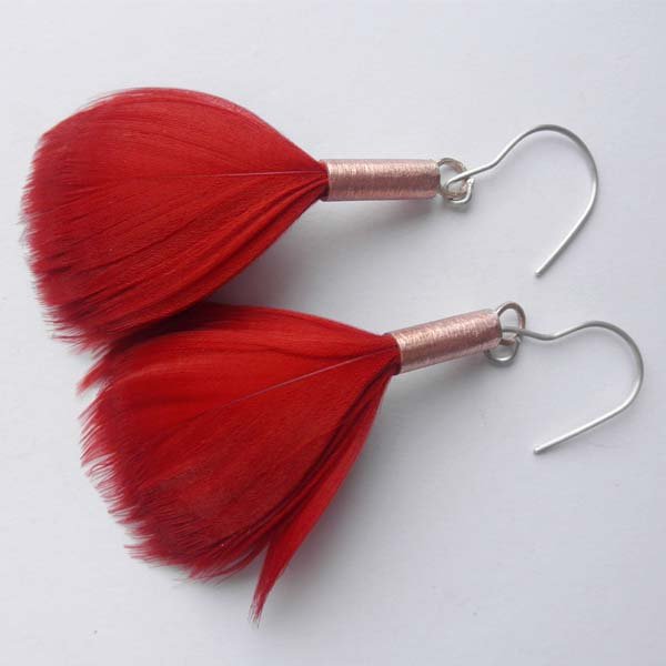 Kolczyki wykonane są z : miedź, naturalne barwione pióra.