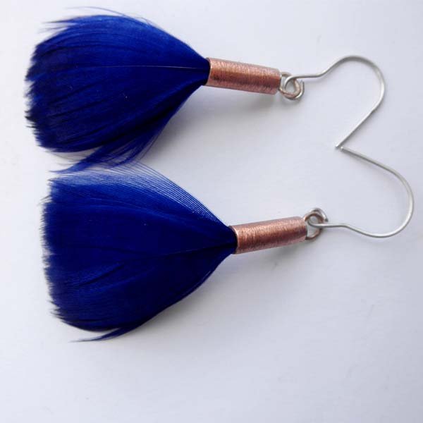 Kolczyki wykonane są z : miedź, naturalne barwione pióra.
