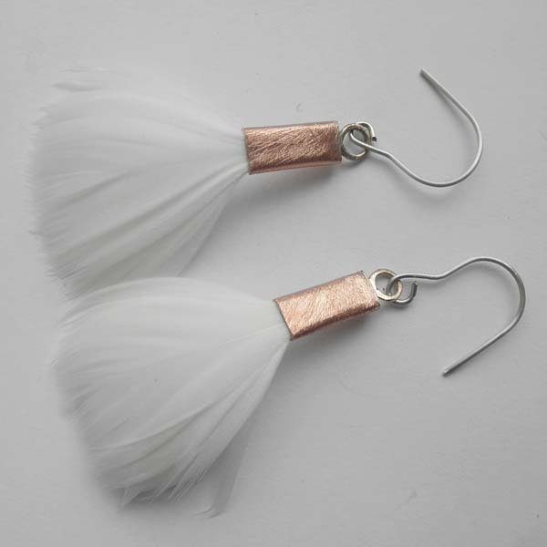 Kolczyki wykonane są z : miedź, naturalne barwione pióra.