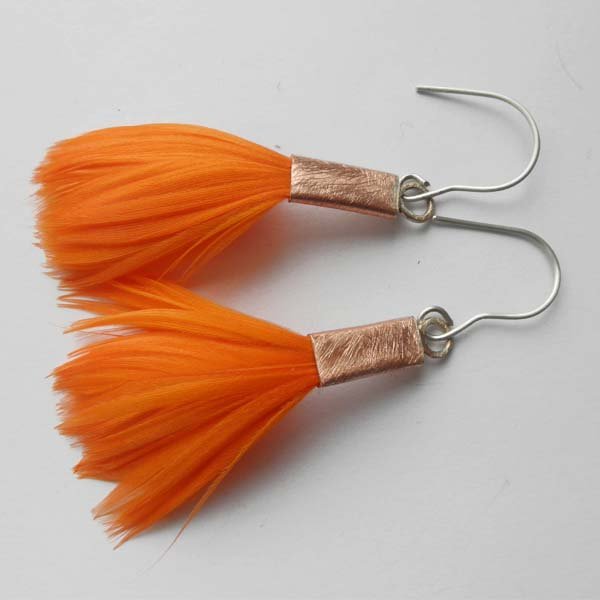 Kolczyki wykonane są z : miedź, naturalne barwione pióra.
