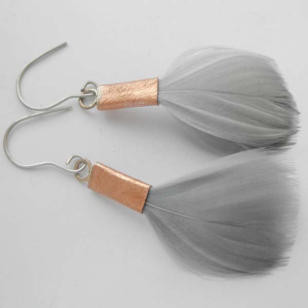 Kolczyki wykonane są z : miedź, naturalne barwione pióra.