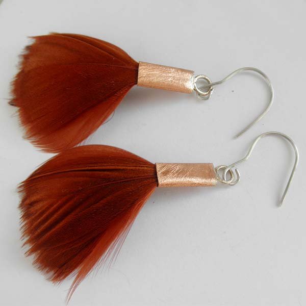Kolczyki wykonane są z : miedź, naturalne barwione pióra.