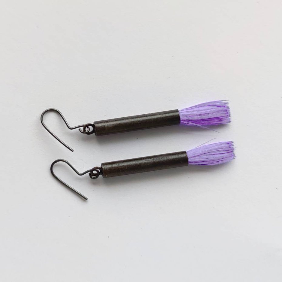 PIÓRKO - stylowy dodatek. Połączenie lekkości piórka i trwałości metalu. Metal niezwykle kontrastuje z naturalnym barwionym puchem. Kolczyki wykonane są z mosiądz, naturalnie barwione pióra. Mosiądz - zmatowiony, oksydowane, przecierane. Bigle otwarte - srebro pr.925 oksydowane. Długość z biglami - 5 cm.