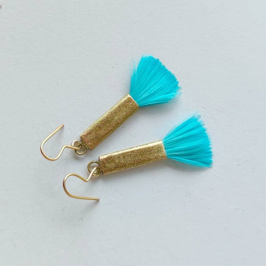 PIÓRKO - stylowy dodatek. Delikatne oraz lekkie kolczyki dodadzą charakteru każdej stylizacji. Metal niezwykle kontrastuje z naturalnym barwionym puchem. Kolczyki wykonane są z miedzi, naturalnie barwione pióra. Miedź - zmatowiony. Bigle otwarte - srebro pr.925. Długość z biglami - 5,5 cm. Szerokość - 1,5 cm. Waga - ok. 2,5 g.
