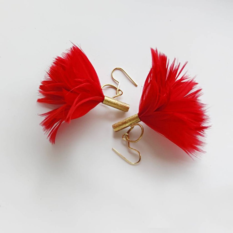 PIÓRKO – stylowy dodatek. Połączenie lekkości piórka i trwałości metalu. Metal niezwykle kontrastuje z naturalnym barwionym puchem. Kolczyki wykonane są z mosiądzu, naturalnie barwione pióra. Mosiądz – zmatowiony. Bigle otwarte – srebro pr.925,pozłacane. Długość z biglami ok. 6 cm. Szerokość – 6cm.