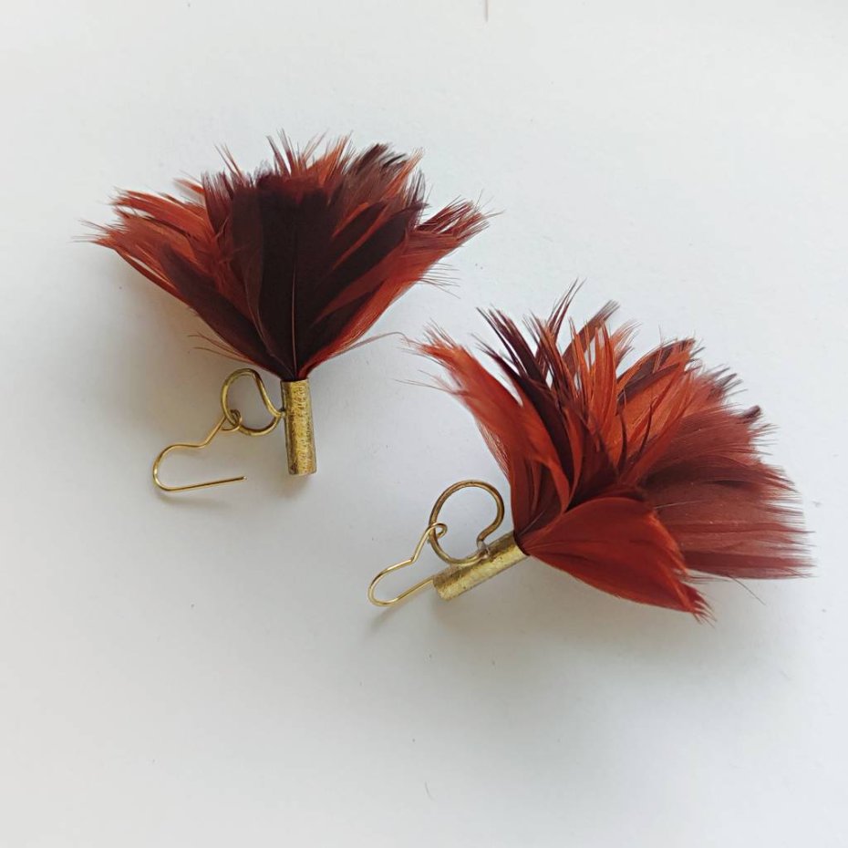 PIÓRKO – stylowy dodatek. Połączenie lekkości piórka i trwałości metalu. Metal niezwykle kontrastuje z naturalnym barwionym puchem. Kolczyki wykonane są z mosiądzu, naturalnie barwione pióra. Mosiądz – zmatowiony. Bigle otwarte – srebro pr.925,pozłacane. Długość z biglami ok. 6 cm. Szerokość – 6cm.
