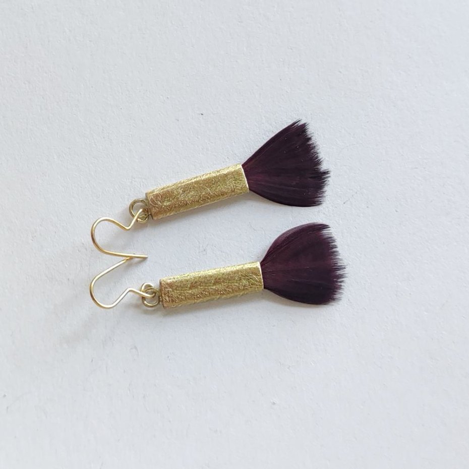 PIÓRKO - stylowy dodatek. Delikatne oraz lekkie kolczyki dodadzą charakteru każdej stylizacji. Metal niezwykle kontrastuje z naturalnym barwionym puchem. Kolczyki wykonane są z miedzi, naturalnie barwione pióra. Miedź - zmatowiony. Bigle otwarte - srebro pr.925. Długość z biglami - 5,5 cm. Szerokość - 1,5 cm. Waga - ok. 2,5 g.
