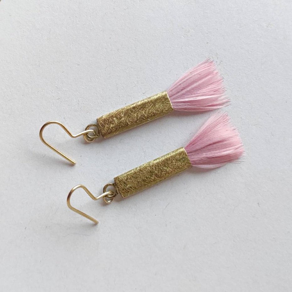 PIÓRKO - stylowy dodatek. Delikatne oraz lekkie kolczyki dodadzą charakteru każdej stylizacji. Metal niezwykle kontrastuje z naturalnym barwionym puchem. Kolczyki wykonane są z miedzi, naturalnie barwione pióra. Miedź - zmatowiony. Bigle otwarte - srebro pr.925. Długość z biglami - 5,5 cm. Szerokość - 1,5 cm. Waga - ok. 2,5 g.