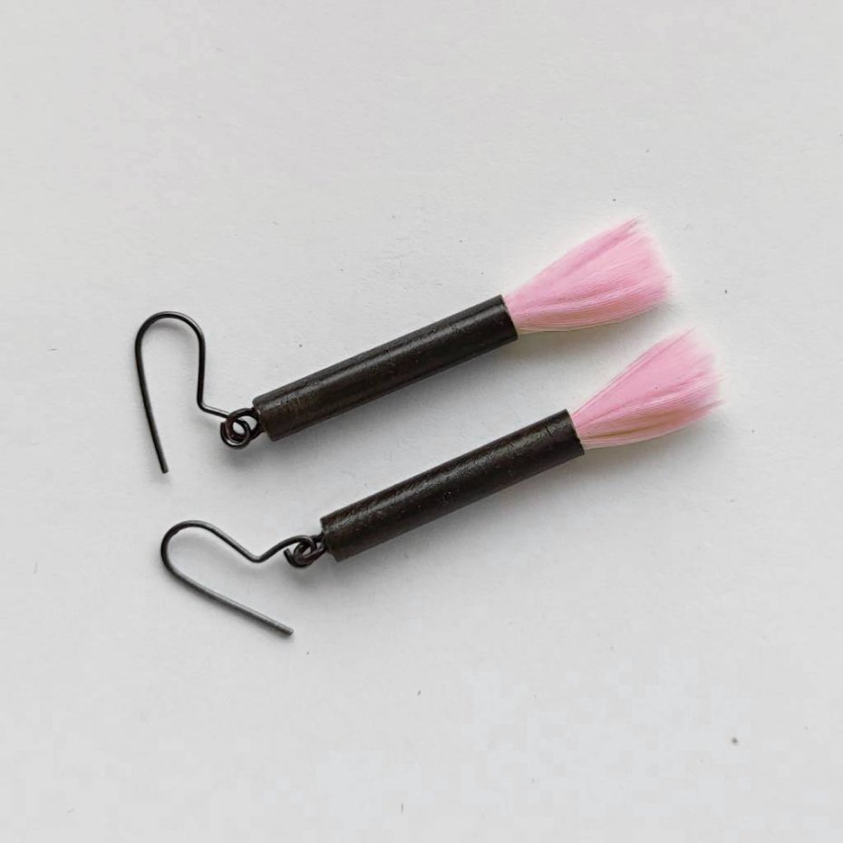 PIÓRKO - stylowy dodatek. Połączenie lekkości piórka i trwałości metalu. Metal niezwykle kontrastuje z naturalnym barwionym puchem. Kolczyki wykonane są z mosiądz, naturalnie barwione pióra. Mosiądz - zmatowiony, oksydowane, przecierane. Bigle otwarte - srebro pr.925 oksydowane. Długość z biglami - 5 cm.