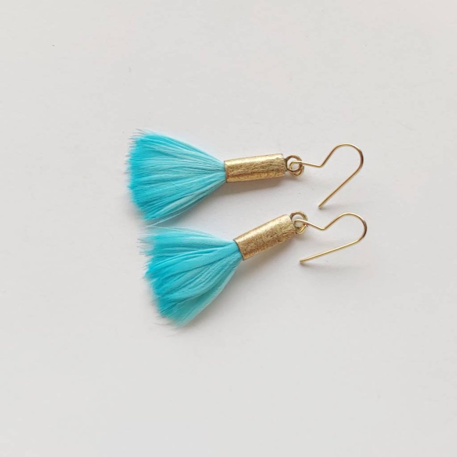 PIÓRKO - stylowy dodatek. Delikatne oraz lekkie kolczyki dodadzą charakteru każdej stylizacji. Metal niezwykle kontrastuje z naturalnym barwionym puchem. Kolczyki wykonane są z miedzi, naturalnie barwione pióra. Miedź - zmatowiony. Bigle otwarte - srebro pr.925. Długość z biglami - 4,5 cm. Szerokość - 1,5 cm. Waga - ok. 2,5 g.