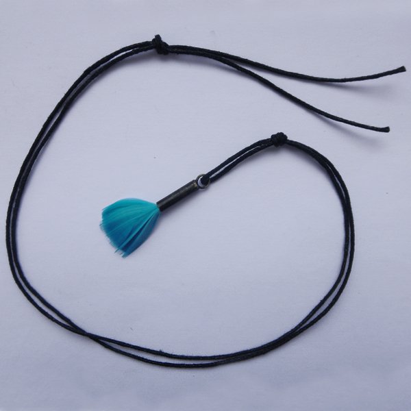 PIÓRKO - stylowy dodatek. Połączenie lekkości piórka i trwałości metalu. Metal niezwykle kontrastuje z naturalnym barwionym puchem. Naszyjnik wykonana jest z : mosiądz, ozdobny sznurek, naturalne barwione pióra. Mosiądz : oksydowany. Długość sznurka: ok. 85 cm ( istnieje możliwość regulacji długości ). Długość zawieszki: ok. 4 cm. Szerokość: ok. 2 cm. Istnieje możliwość wykonania wisiorka w innych kolorach.