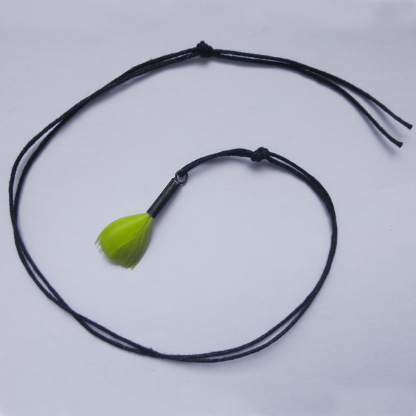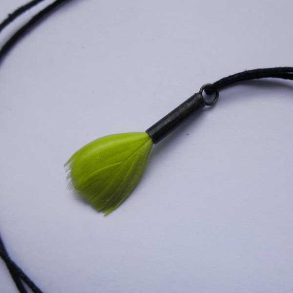 PIÓRKO - stylowy dodatek. Połączenie lekkości piórka i trwałości metalu. Metal niezwykle kontrastuje z naturalnym barwionym puchem. Naszyjnik wykonana jest z : mosiądz, ozdobny sznurek, naturalne barwione pióra. Mosiądz : oksydowany. Długość sznurka: ok. 85 cm ( istnieje możliwość regulacji długości ). Długość zawieszki: ok. 4 cm. Szerokość: ok. 2 cm. Istnieje możliwość wykonania wisiorka w innych kolorach.