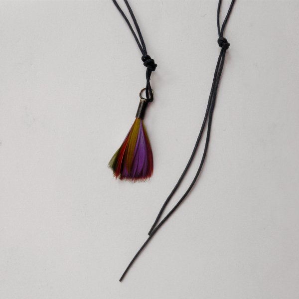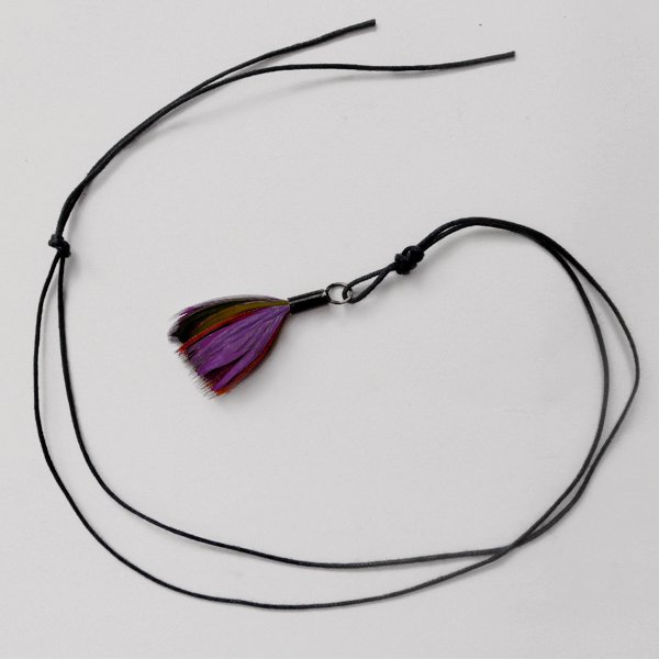 PIÓRKO - stylowy dodatek. Połączenie lekkości piórka i trwałości metalu. Metal niezwykle kontrastuje z naturalnym barwionym puchem. Naszyjnik wykonana jest z : mosiądz, ozdobny sznurek, naturalne barwione pióra. Mosiądz : oksydowany. Długość sznurka: ok. 85 cm ( istnieje możliwość regulacji długości ). Długość zawieszki: ok. 4 cm. Szerokość: ok. 2 cm. Istnieje możliwość wykonania wisiorka w innych kolorach.