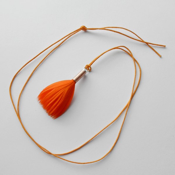 PIÓRKO - stylowy dodatek. Połączenie lekkości piórka i trwałości metalu. Metal niezwykle kontrastuje z naturalnym barwionym puchem. Naszyjnik wykonana jest z : miedź, ozdobny sznurek, naturalne barwione pióra. Miedź : zmatowiona. Długość sznurka: ok. 85 cm ( istnieje możliwość regulacji długości ). Długość zawieszki: ok. 6 cm. Szerokość: ok. 1,5 cm. Waga: ok. 2 g. Istnieje możliwość wykonania wisiorka w innych kolorach.