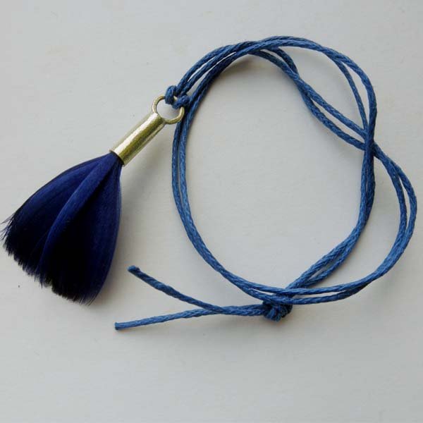 PIÓRKO - stylowy dodatek. Połączenie lekkości piórka i trwałości metalu. Metal niezwykle kontrastuje z naturalnym barwionym puchem. Naszyjnik wykonana jest z : mosiądz, ozdobny sznurek, naturalne barwione pióra. Mosiądz : zmatowiony. Długość sznurka: ok. 85 cm ( istnieje możliwość regulacji długości ). Długość zawieszki: ok. 4 cm. Szerokość: ok. 1,5 cm. Waga: ok. 2 g.