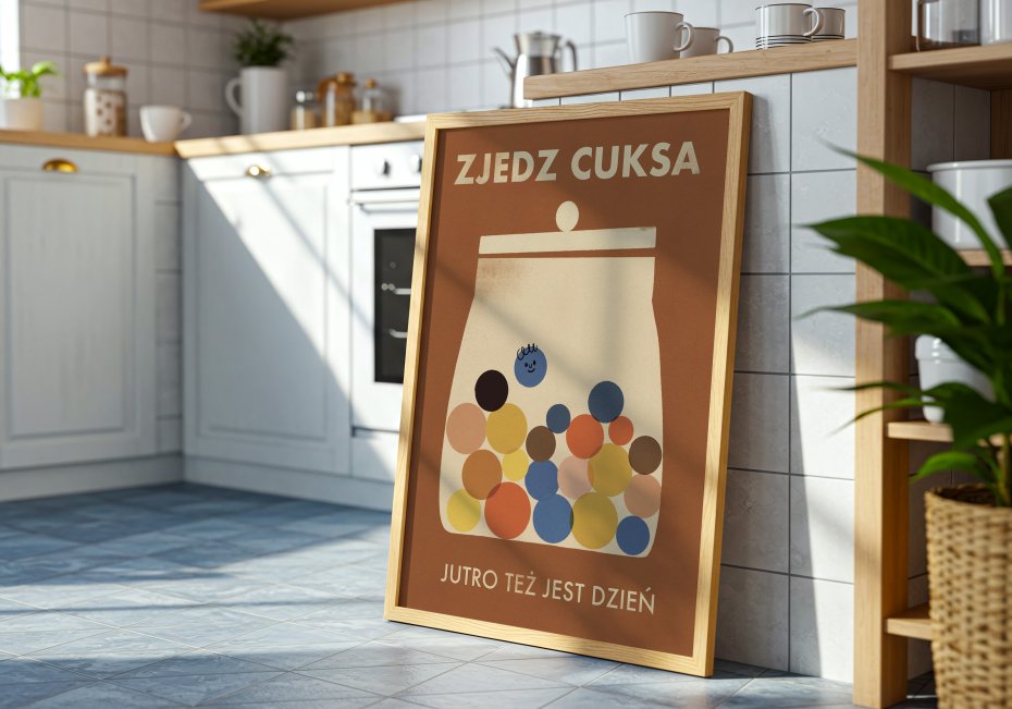 Cyfrowy wydruk autorskiej ilustracji. Zaprojektowany i wydrukowany w Polsce.