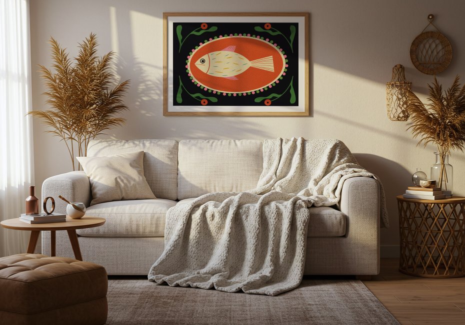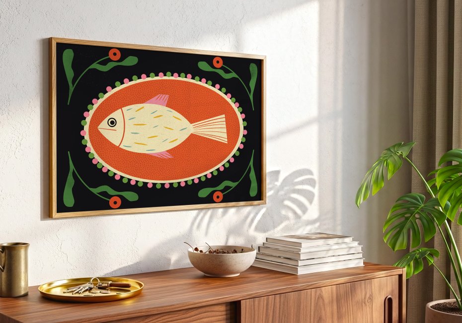 Cyfrowy wydruk autorskiej ilustracji. Zaprojektowany i wydrukowany w Polsce.